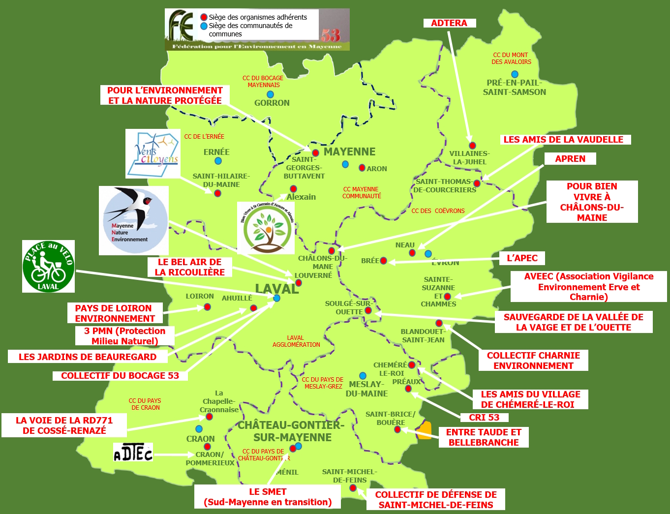Les 25 associations ou collectifs adhérents à la FE 53 à jour dans leurs cotisations au 01-01-2026 (environ 1 500 personnes).